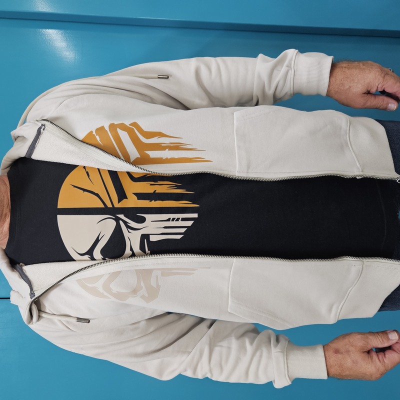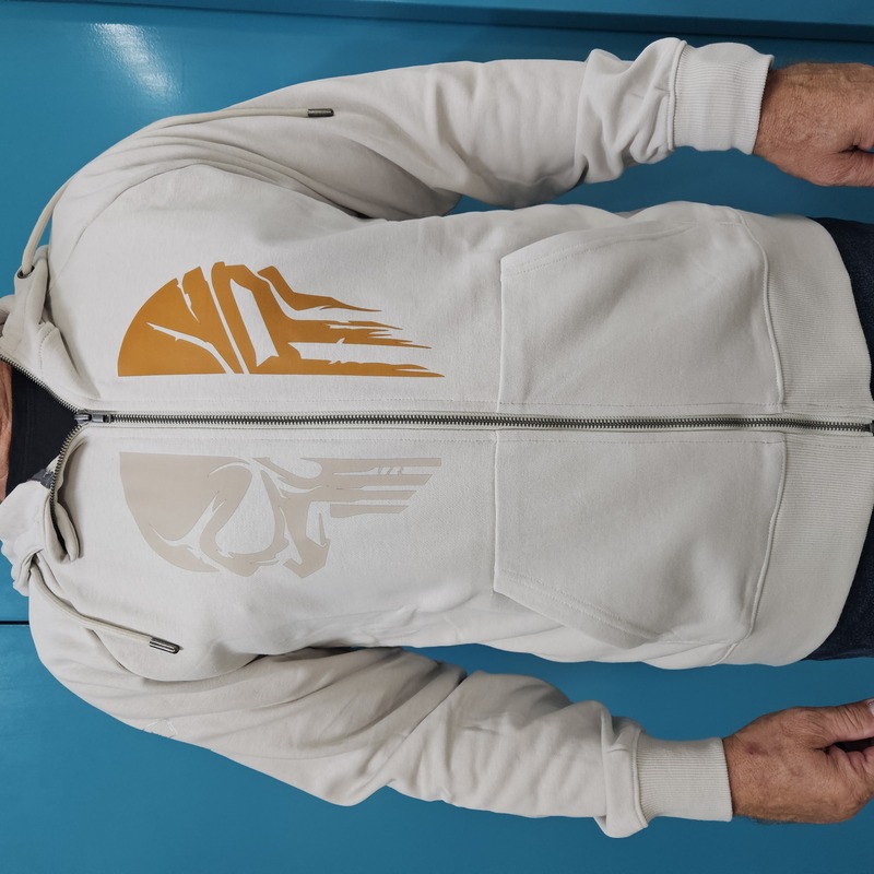 Hier empfehlen wir grundsätzlich einen vorgängigen Drucktest. Vorsicht bei dunkel gefärbtem Polyester und Softshelljacken.
